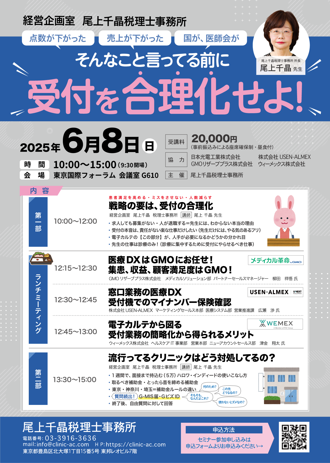 患者満足を高める・ミスをさせない・人数を減らすなど、戦略の要は、受付の合理化!